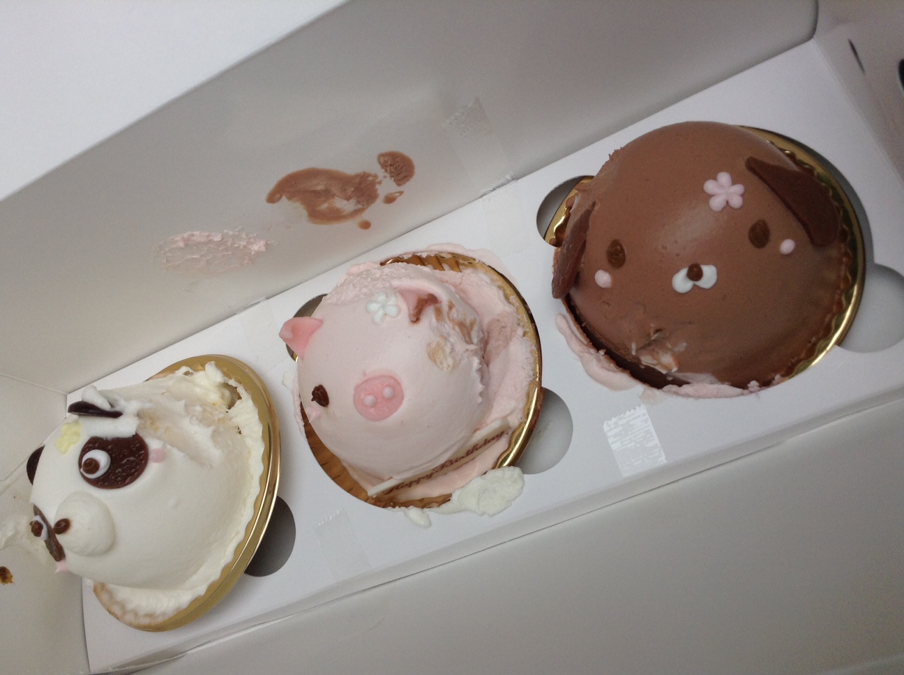 可愛いパンダとブタちゃんとワンコだった筈なんだけど予想以上に暑かったのか、私の持ち方が悪かったのかコノザマでしたwwwwww
