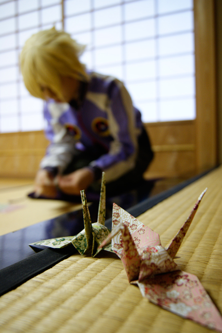 <折紙が折紙折ってました。折れてなくて鶴折り講座したw
