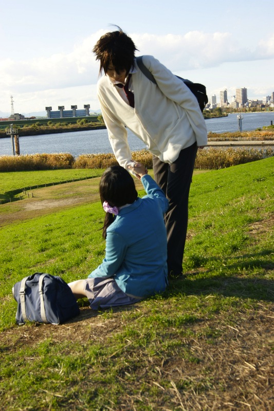 肩に手をやる、手を繋ぐが限界のふたり。